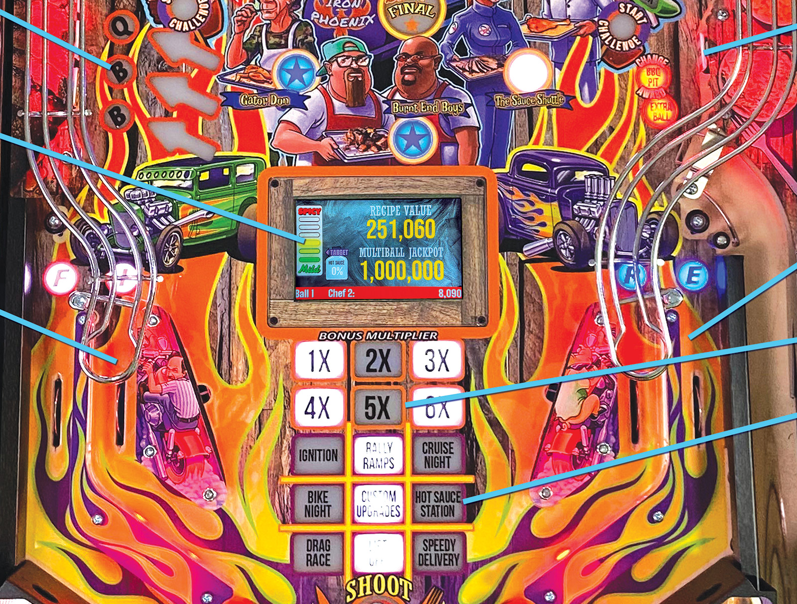 Contributions from Steve Bowden, Dennis Nordman, and Ryan McQuaid in design assistance played a vital role in refining the game's playfield, creating a compelling and immersive experience. The visual and interactive elements of the game were brought to life under the art direction of Jack Haeger, with Dan Hughes providing the artwork, and animations crafted by Jessica Durbala and Bobby Llereza. The mechanical integrity and design, managed by Zofia Ryan and Mitesh Pithva, along with Benjamin Kibler's project management, ensured the game's seamless operation. Pinball player and voice actor Jeff Teolis serves as the announcer in BBQ, infusing the gameplay with dynamic commentary. Through this collective expertise, 'Barry O’s BBQ Challenge' not only pays homage to Barry Oursler's remarkable legacy but also captures the essence of pinball.