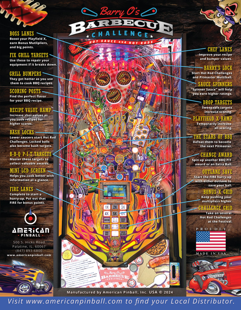 We are confident that 'Barry O’s BBQ Challenge' will be a great addition to your collection and will be enjoyed by players of all skill levels. For more information or to place your order, please contact your American Pinball Distributor Mr Pinball Australia Today.